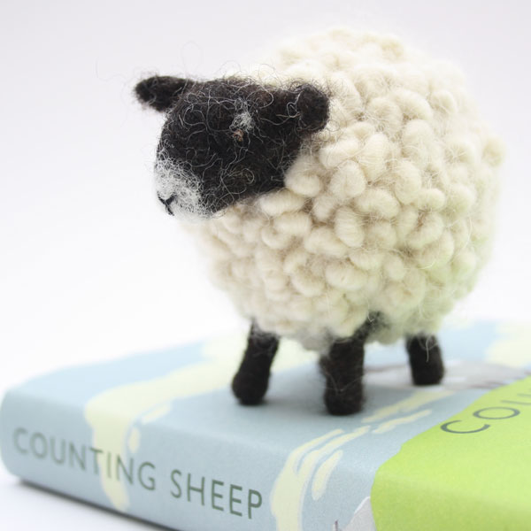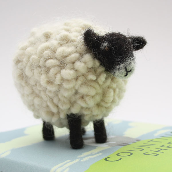 Hand-sculpted using the needle-felt technique, I have made this Love Ewe from the very finest rare breed Cotswold fleece, with Zwartbles fleece used for her black face and legs.