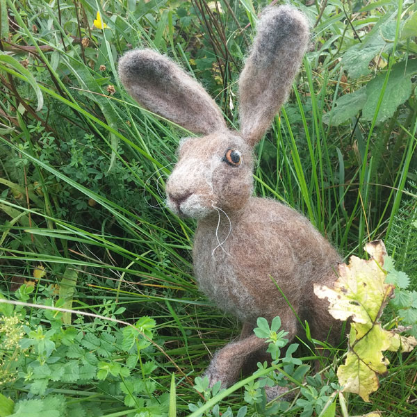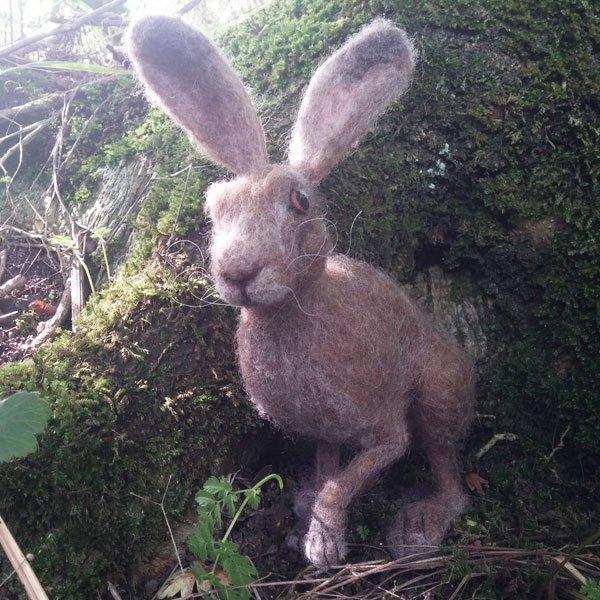 Jarvis the Hare has been sculpted over a wire armature using only natural coloured wools from several different breeds of British sheep. A completely free standing work of art this unique hare sculpture is brimming full of character and charm – from his raised front paw to his curious gaze.
