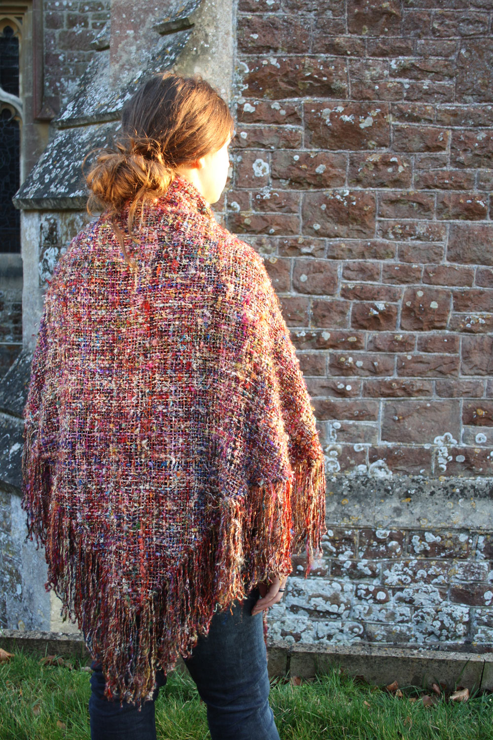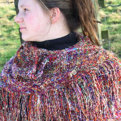 This luxurious Sari Silk Shawl, has been hand woven on a tri-angle loom.